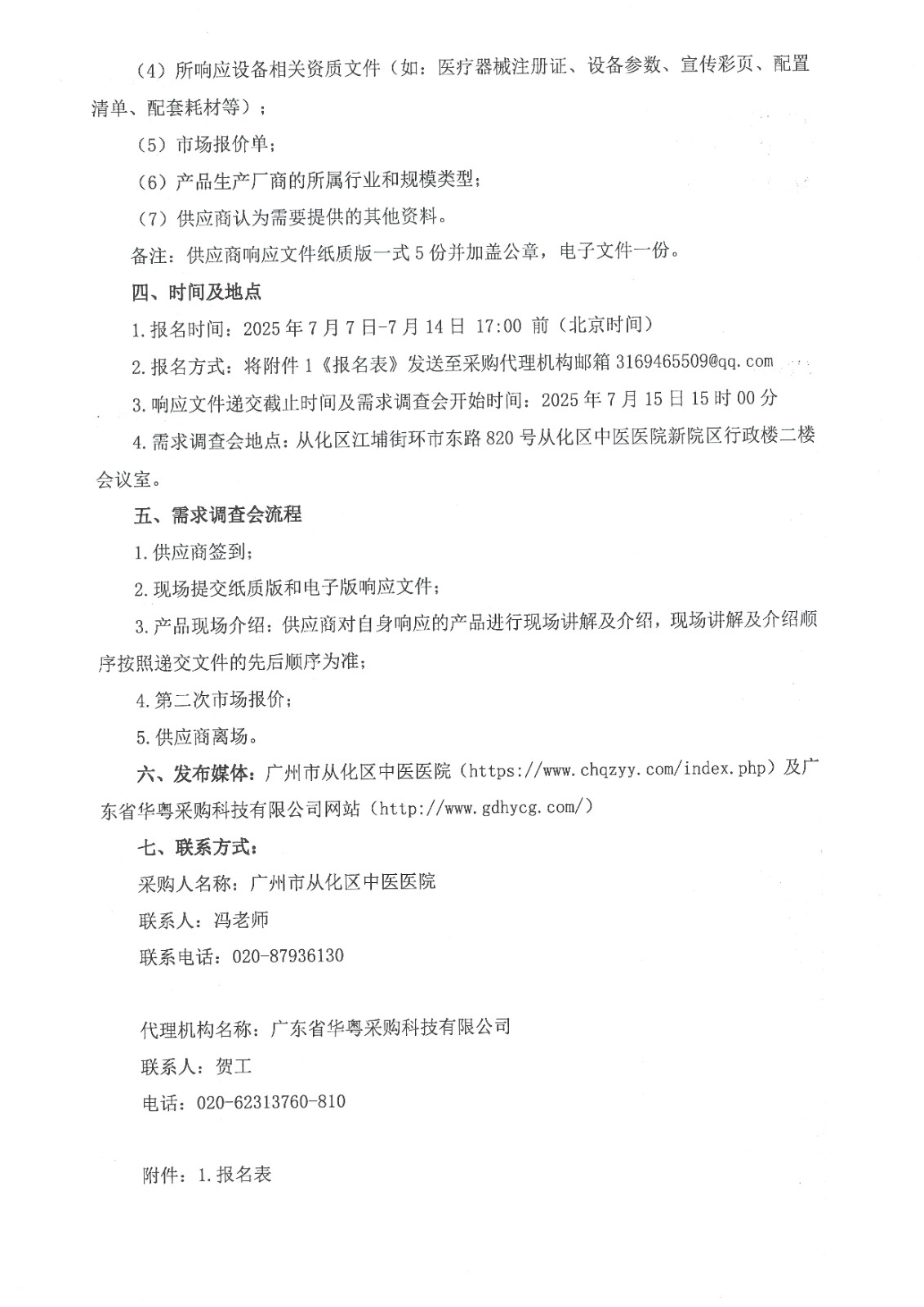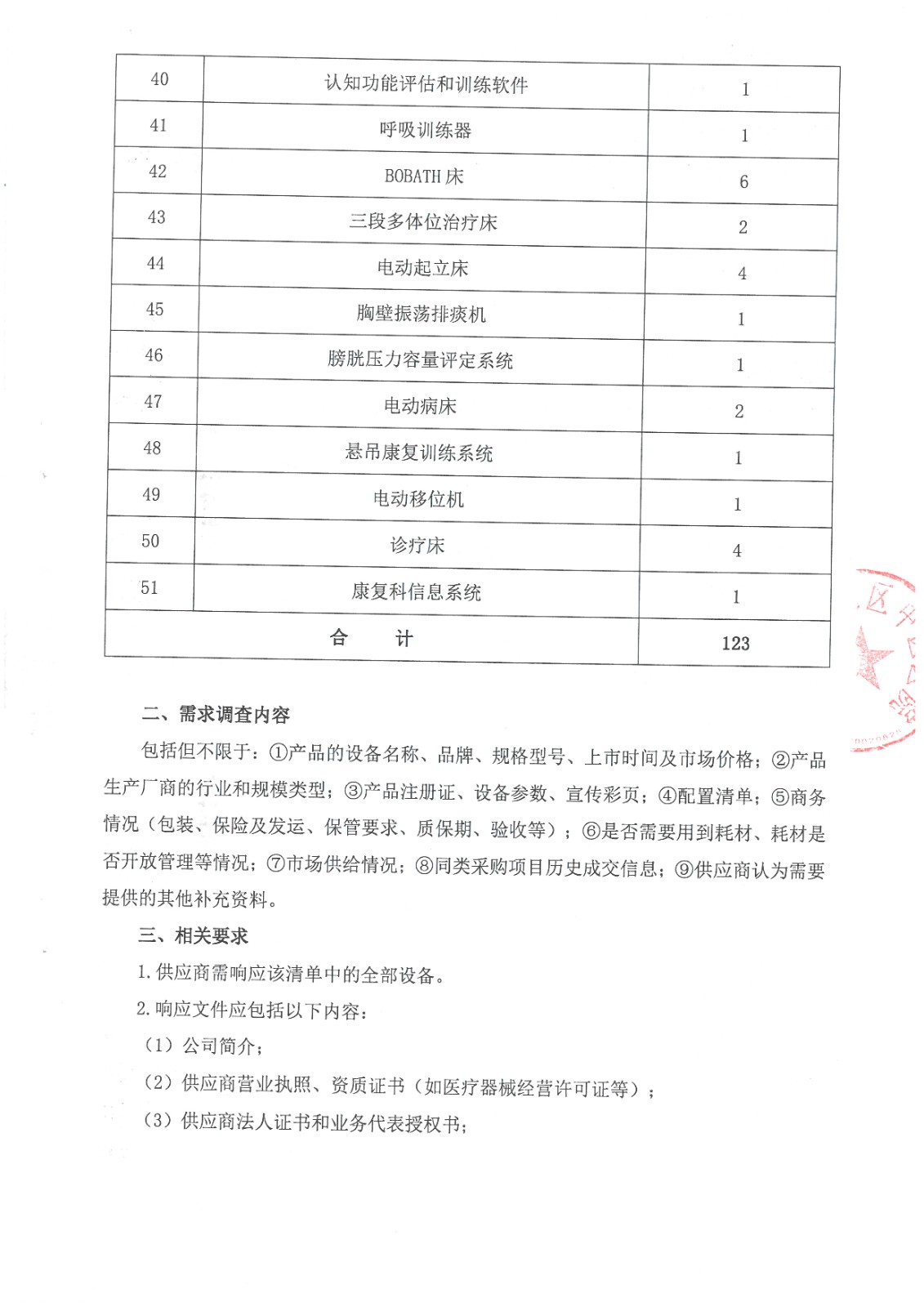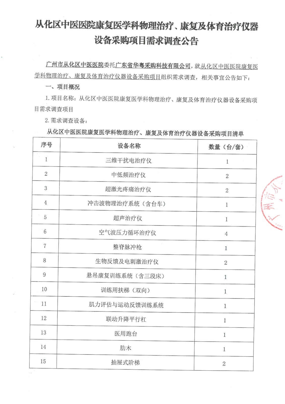 从化区中医医院康复医学科物理治疗、康复及体育治疗仪器设备采购项目需求调查公告