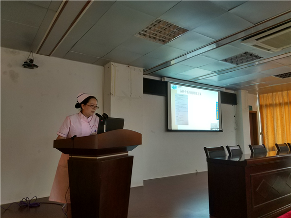 2018年9月13日16:30,护理部在门诊5楼会议室组织护理业务学习,课题为《康复训练在骨科护理中的应用》,由骨伤科潘俊静护长主讲,科室非值班护士积极参加学习。