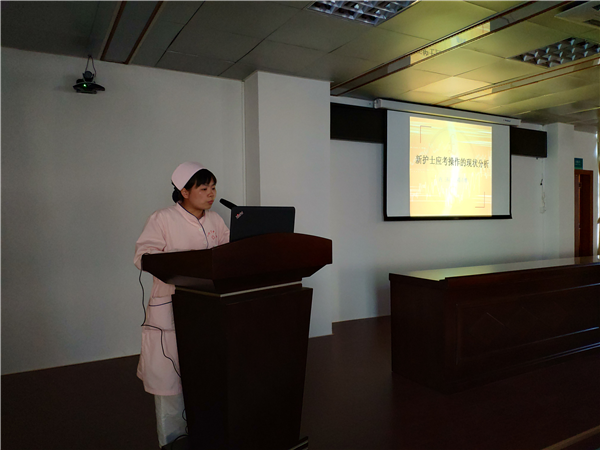 2018年11月13日16:30,护理部在门诊5楼会议室组织护理业务学习,课题为《新护士应考操作的现状分析》,由内三科护士禤靖珊主讲,科室非值班护士积极参加学习。