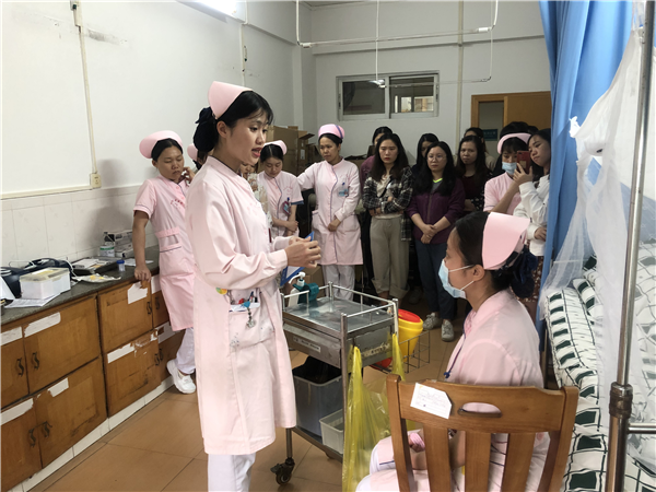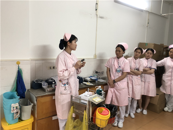 4月22日16:30,护理部在内四科组织了4月的新护士基础护理操作示范,学习内容主要包括“痰液标本采集、血糖监测、皮下注射法及胰岛素笔的使用”,由护理组长李家敏负责讲解、示范,科室安排了新护士到场学习。