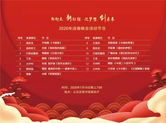 2020年1月16日19点,从化区中医医院诚邀您观看迎春晚会!