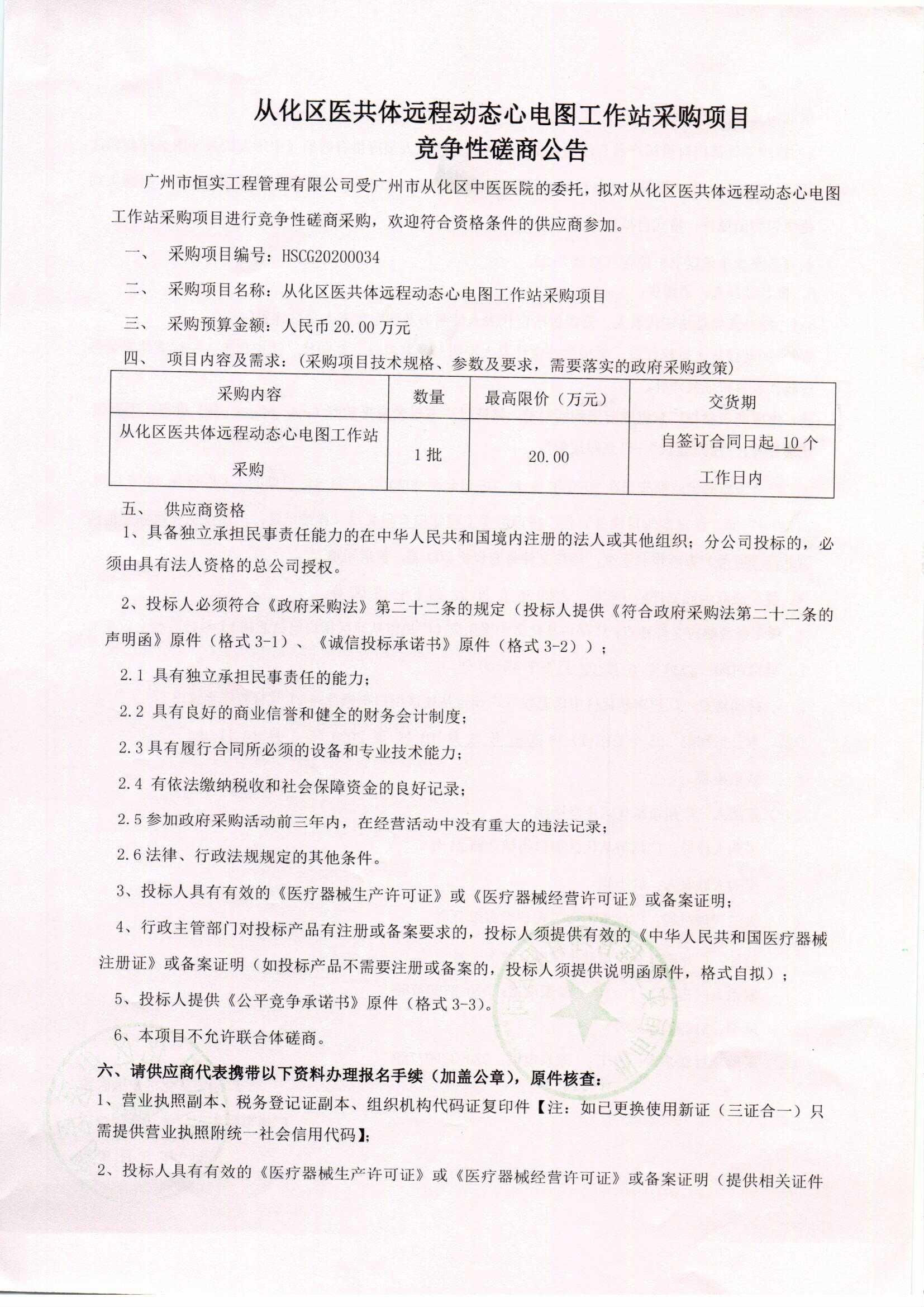 从化区医共体远程动态心电图工作站采购项目竞争性磋商公告