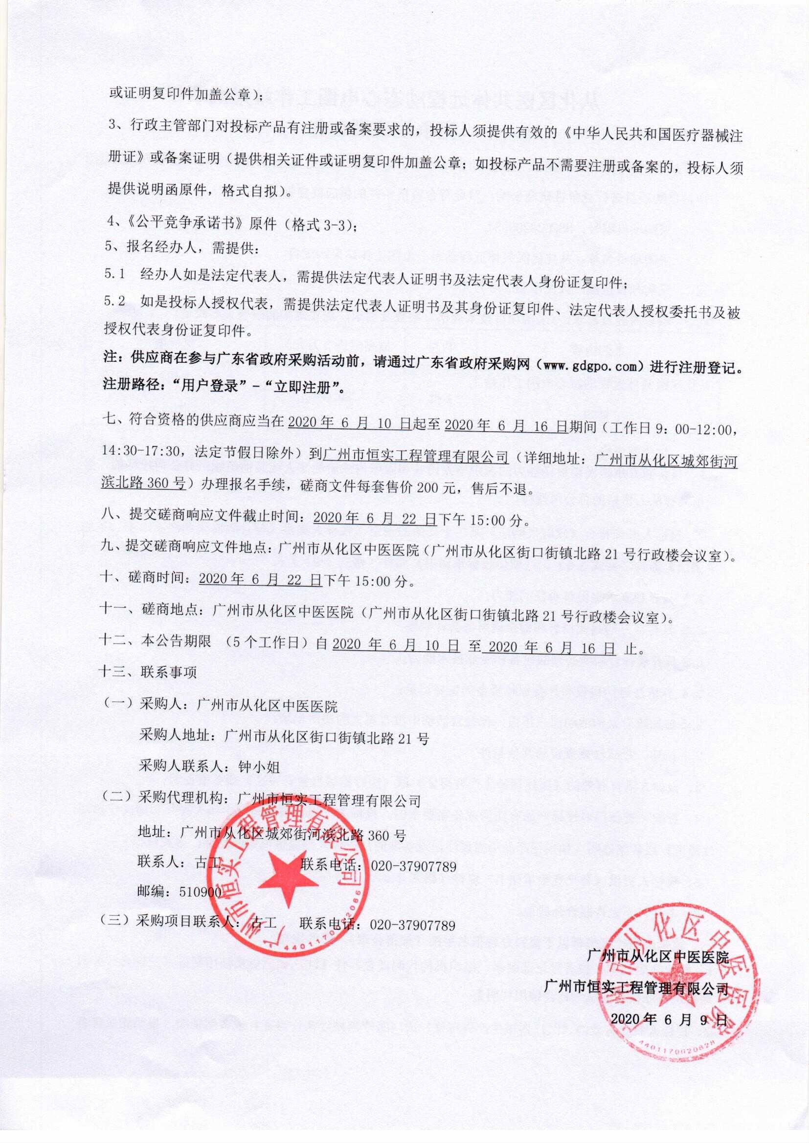 广州市从化区中医医院医用耗材采购遴选公告-从中医 耗材﹝2025﹞0002号