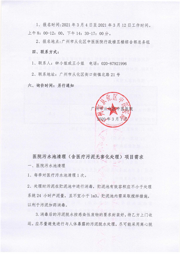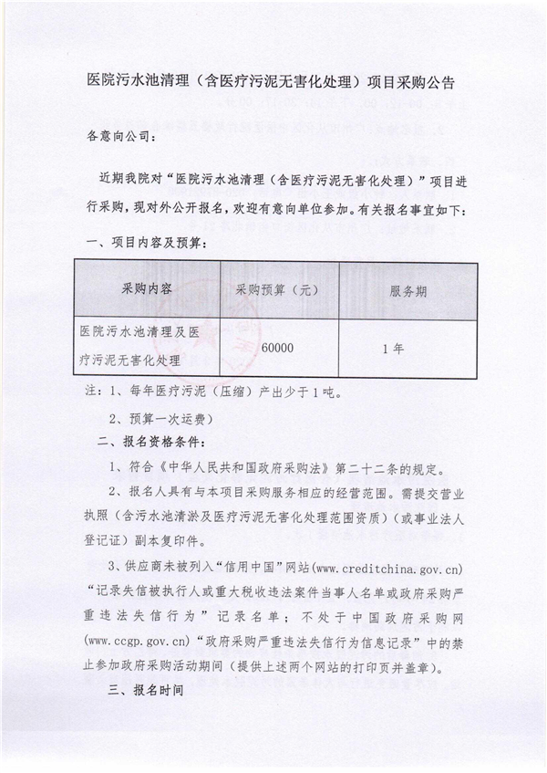 医院污水池清理(含医疗污泥无害化处理)项目采购公告