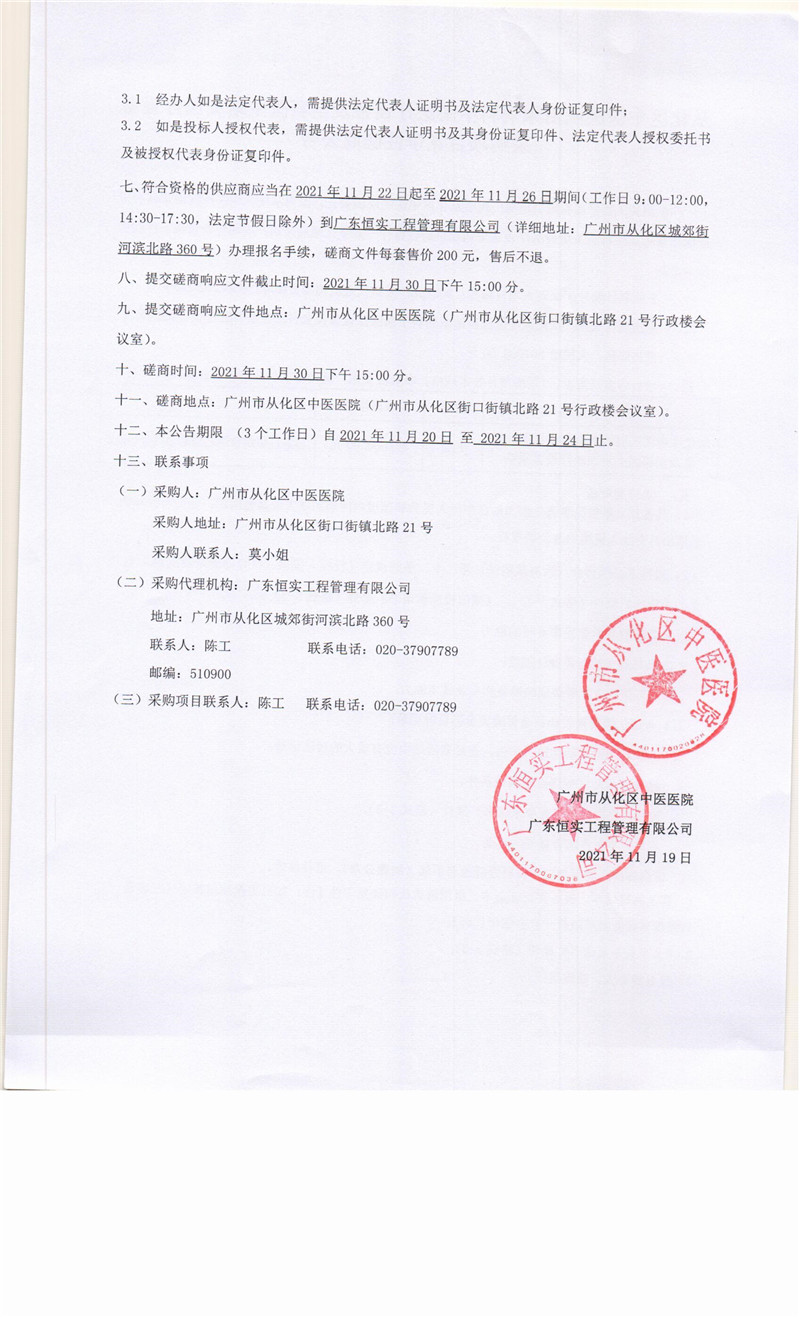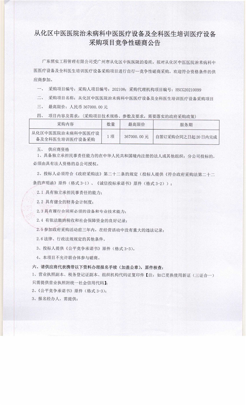 从化区中医医院治未病科中医治疗设备及全科医生培训医疗设备采购项目竞争性磋商公告