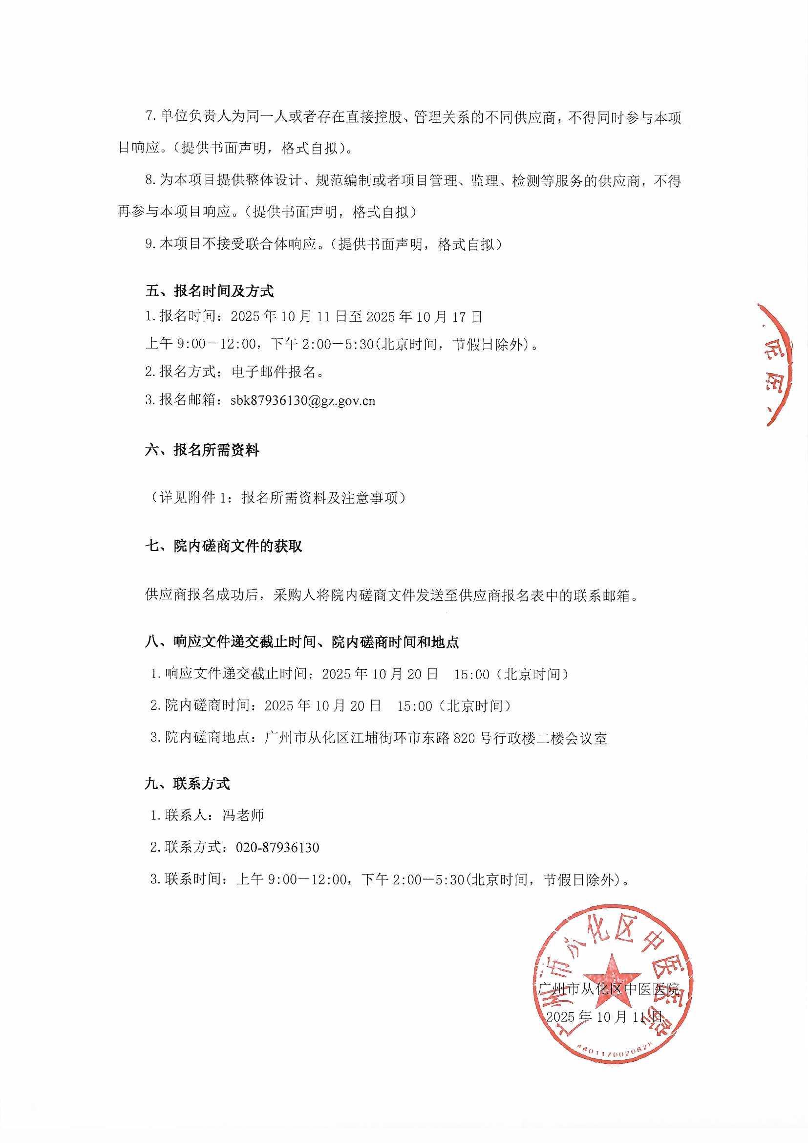 从化区中医医院病媒生物防制服务采购项目院内竞争性磋商公告