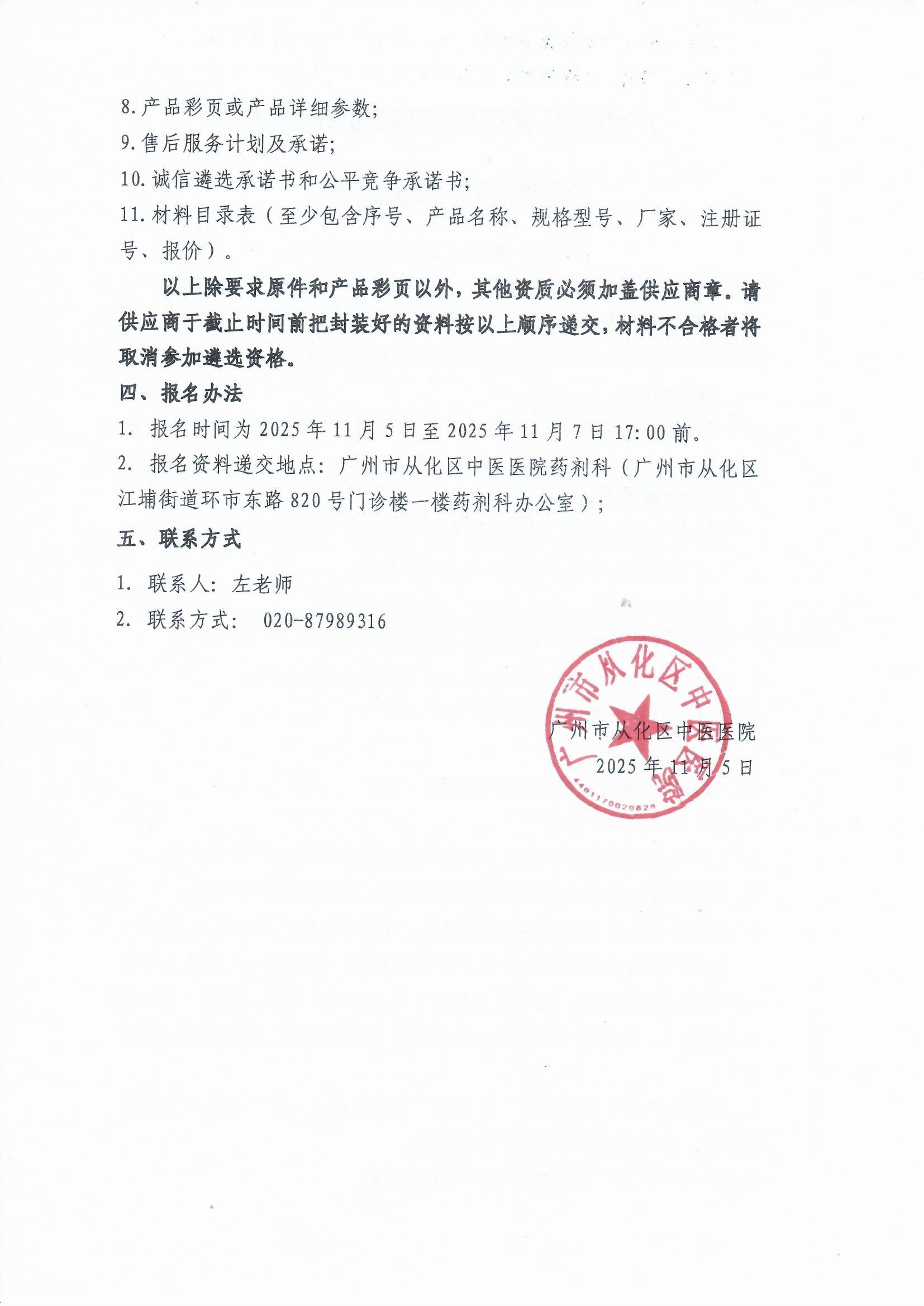 广州市从化区中医医院医用耗材采购遴选二次公告-从中医 耗材﹝2025﹞0002号