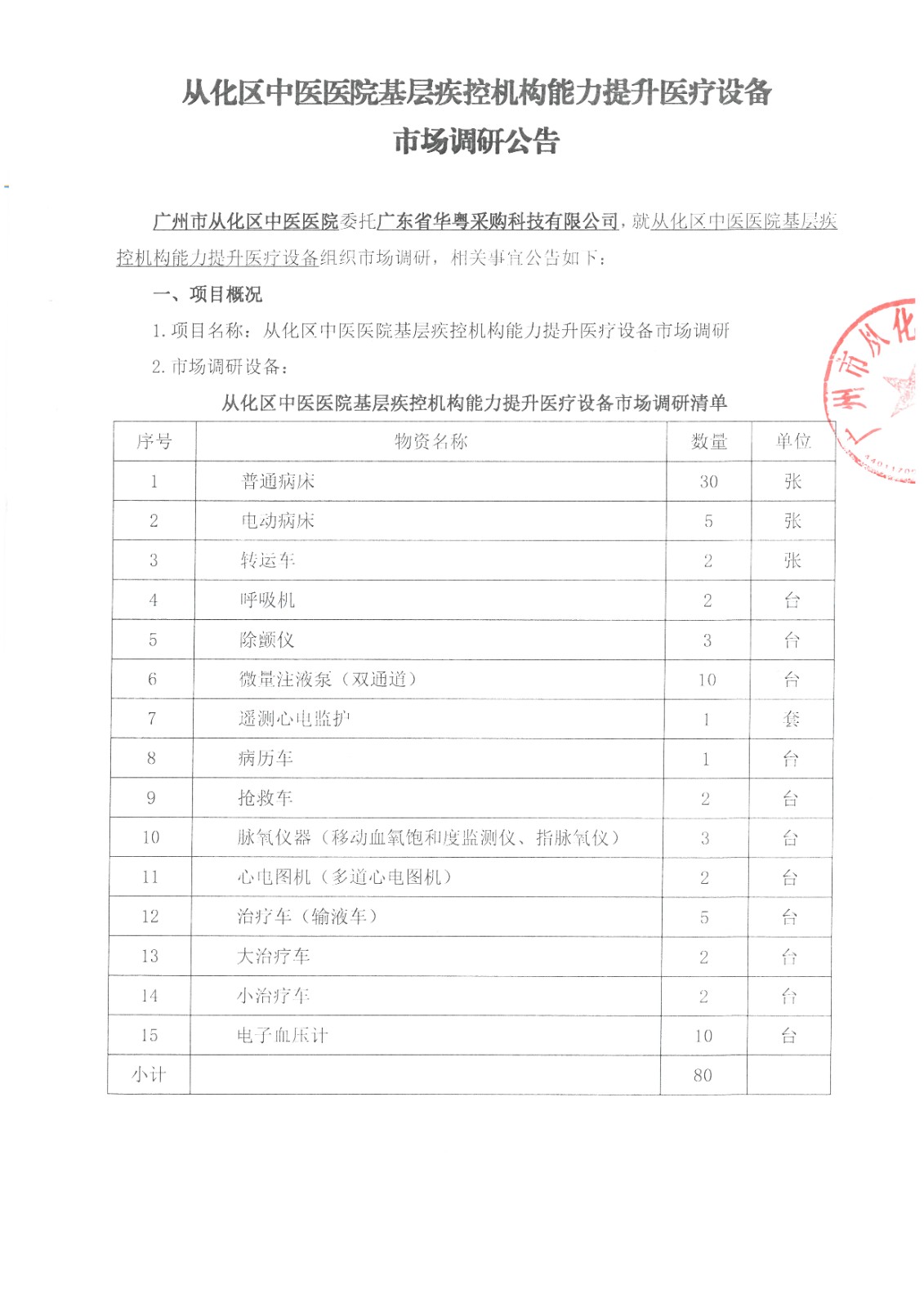 从化区中医医院基层疾控机构能力提升医疗设备市场调研公告