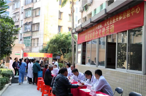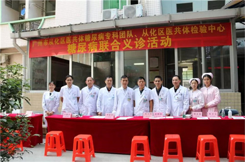 2019年11月14日上午9:00广州市从化区医共体糖尿病专科团队联合广州市从化区医共体医学检验中心在从化区中医医院成功举办了以“防控糖尿病,保护你的家庭”为主题的义诊咨询活动。