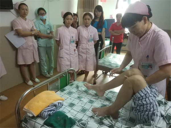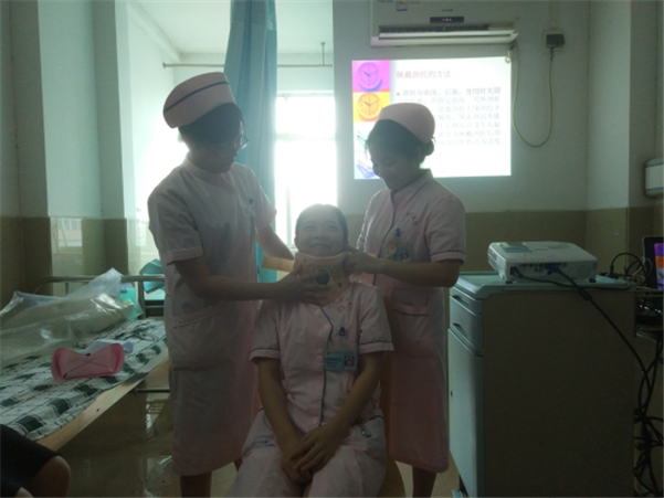 6月19日16:30,护理部在外二科组织了6月的的护理大查房,查房由外二科潘俊静护长主持,外二科护理组长莫宝雄主讲,护士黄小玲为患者进行了细致专业的护理体查,外二科全体护士及各科护长、护士积极参加。本次查房主要学习了颈椎术后病人的护理及其康复训练,对颈托的正确佩戴做了示范,还共同探讨了如何解决患者尿潴留的问题。