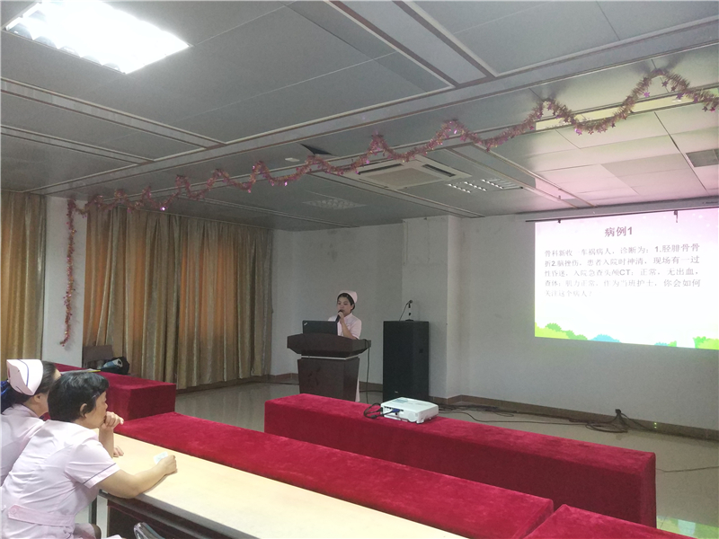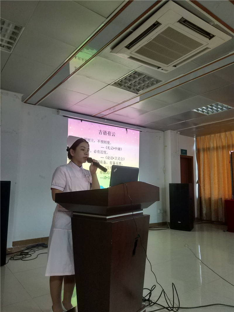 10月10日16:30,护理部在门诊5楼会议室组织护理业务学习,课题为《危重病人的预见性护理》,由内三科护士邝颖主讲,科室护长及非值班护士积极参加学习。本次学习以两个案例引出预见性思维的临床意义,讲述了培养的过程、方法,重点对危重病人常见并发症窒息、深静脉血栓的预见性护理进行了分析。